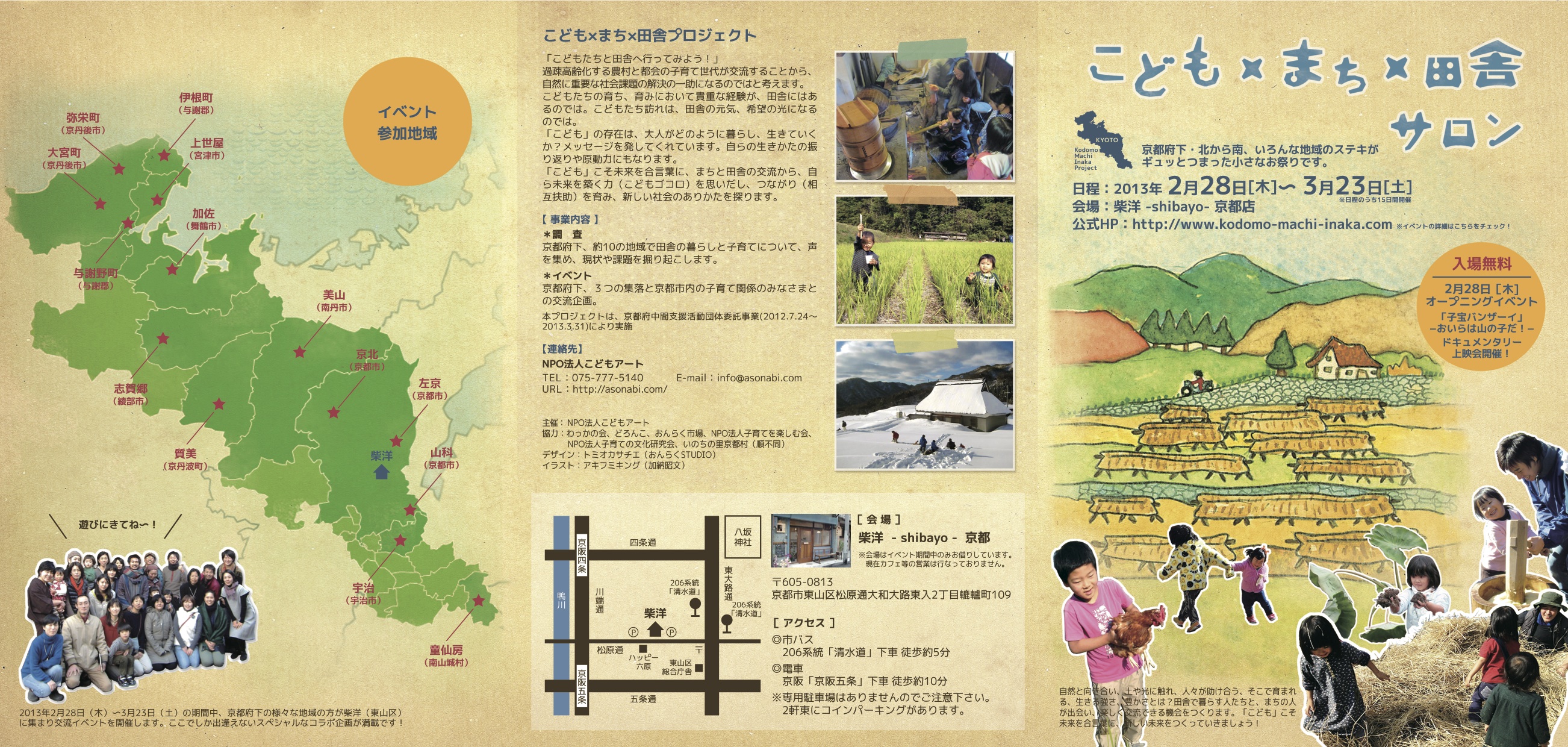 「こどもxまちx田舎 サロン」に関するお問い合わせ先は,サロン内のイベントごとに異なります.恐れ入りますが,パンフレットをご確認下さいませ.